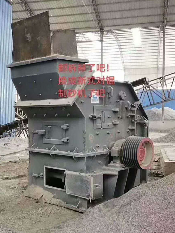 这是是来自西华的一个客户,前期为了省钱投资购买的锤式打沙机,回去用了不到两个月耗材真心用不起,无奈在次更换低耗材,低耗能的对辊制砂机!